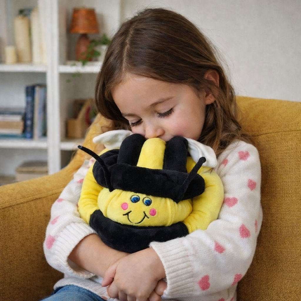 De vibrerende knuffelbal Bij is een fijne en comfortabele sensorische knuffel die helpt bij ontspanning, veiligheid en zelfregulatie. Deze knuffelbal bij heeft een leuke vriendelijke uitstraling en een heerlijk zacht pluche oppervlak, waardoor hij perfect is om vast te houden, te knuffelen en tegenaan te liggen. Ideaal voor momenten waarop een kind behoefte heeft aan rust en geborgenheid.