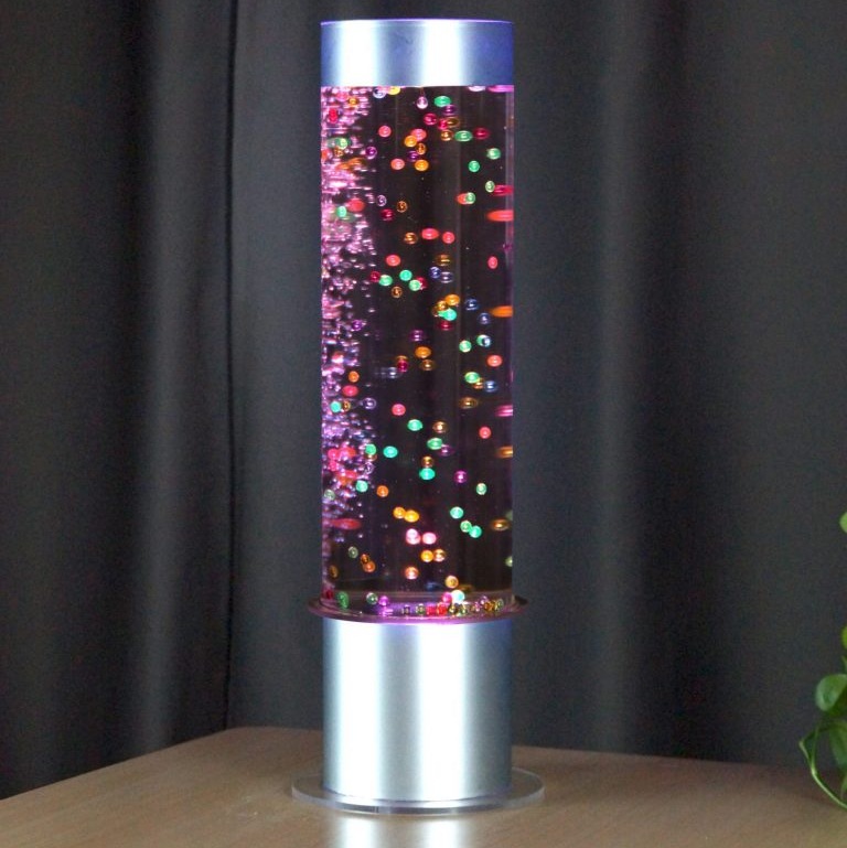 Deze bubbelbuis is voorzien van kleurveranderende verlichting. De bubbels en de kleine balletjes in de lamp maken deze zuik geschikt als snoezelmateriaal thuis of in de klas.