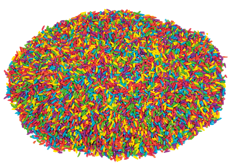 Deze gekleurde rijstkorrels zijn ook te combineren met creatief bezig zijn. Bijvoorbeeld om te tekenen met lijm, bestrooi met rijst en laat drogen. Versier schilderijen, collages en 3D-projecten met deze vrolijk gekleurde korrels.