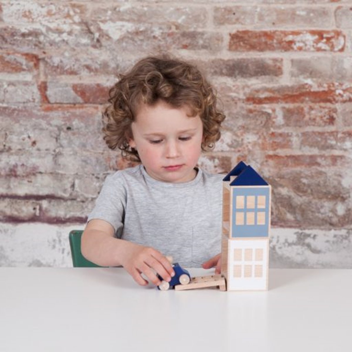Het leuke van deze speelstad set van Lubulona is dat de huizen stapelbaar zijn, maar ook naast elkaar kunnen worden geplaatst. De ladders kunnen ook op diverse manieren bevestigd worden bijvoorbeeld wanneer je een hoog flatgebouw wenst te maken. De auto past in beide huizen en zo kan een huis dus ook als parkeergarage dienen. Ook het houten poppetje kan plaatsnemen in de auto of in de huizen. Kortom laat de fantasie en creativiteit van je kind de vrije loop in hoe met deze losse onderdelen tot eindeloos veel spelplezier te komen.