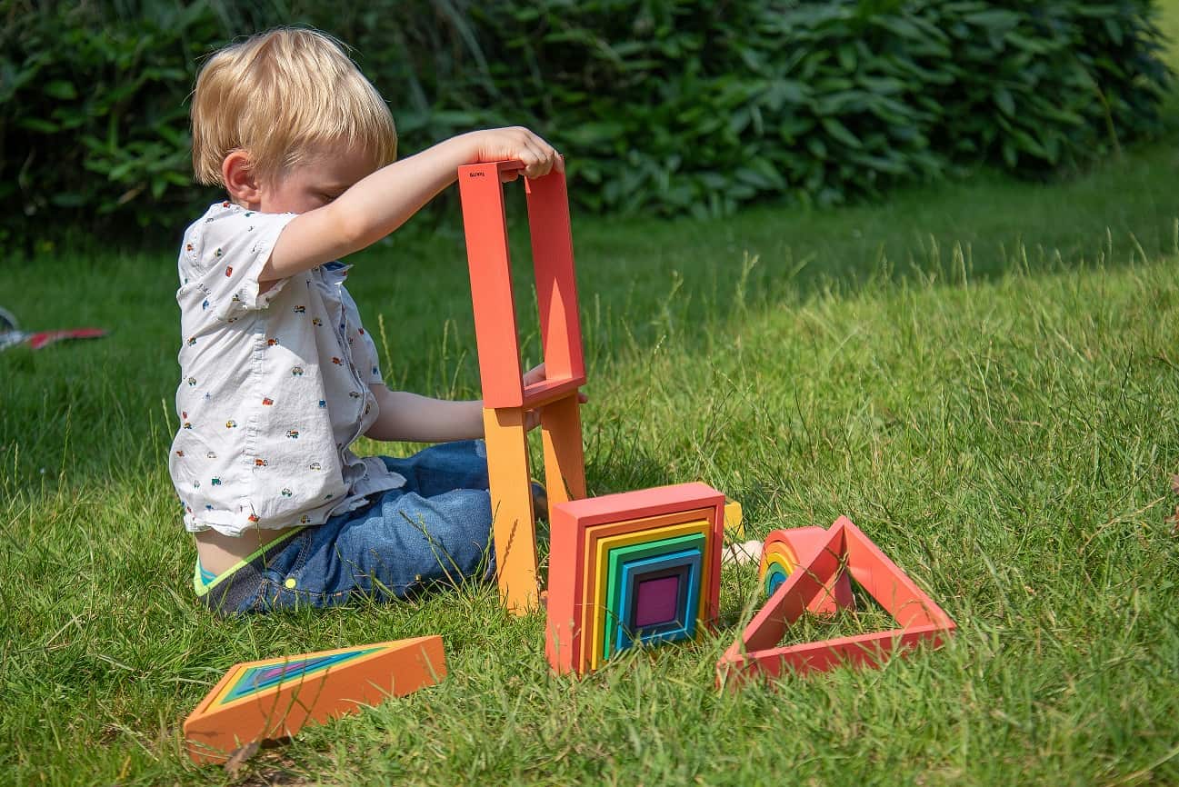 Regenboog architect set van TickiT is mooi gekleurd houten spelmateriaal wat kindere uitdaagt om fantasie en creativiteit te gebruiken. Leuk in combinatie met ander houten spelmateriaal en loose parts onderdelen.