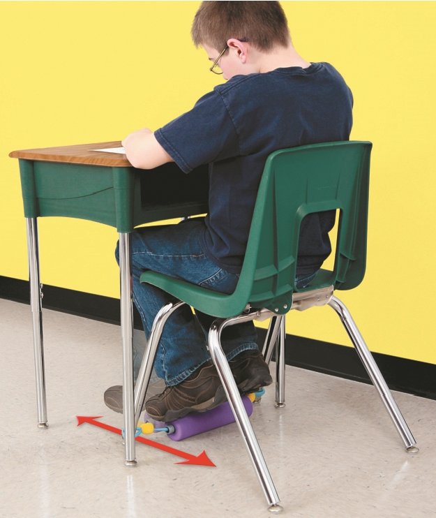De ‘Foot Roller’ helpt kinderen die behoefte hebben aan beweging om zich beter in de klas te concentreren. Deze voetroller kan eenvoudig aan de voorkant van de stoelpoten bevestigd worden. De buis past op een standaard schoolstoel. Het helpt beweeglijke kinderen om toch subtiel in de klas of thuis tijdens huiswerk te bewegen tijdens het werken.