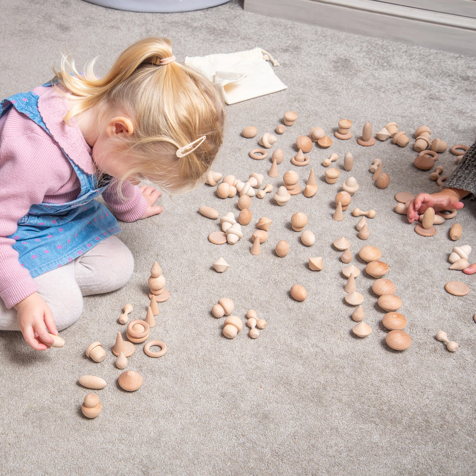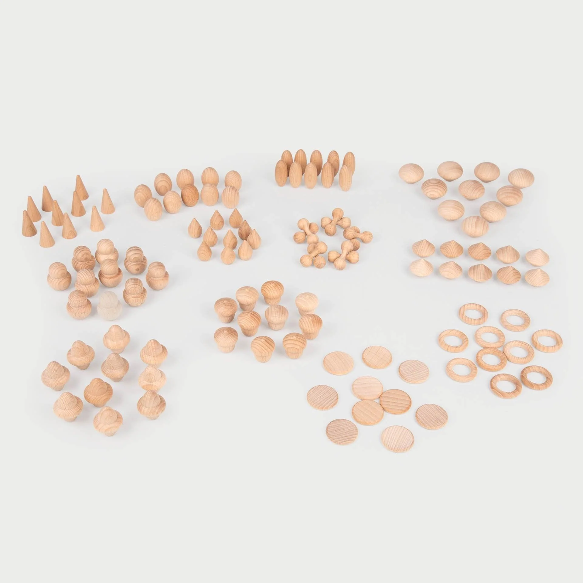De Wooden Treasures naturel bestaat uit prachtige gladde ongeverfde houten spelmaterialen geïnspireerd door de natuur en ontdekking. Er zijn 12 verschillende vormen die zijn ontworpen om de verbeelding te stimuleren, logica te gebruiken, creatief vermogen te ontdekken, coördinatie te ontwikkelen en de fijne motoriek te verbeteren. Het open karakter van ongekleurd hout zorgt voor een breder fantasierijk spel, om afbeeldingen en verhalen te maken, te oefenen met tellen en sorteren, patronen en reeksen te ontwerpen.