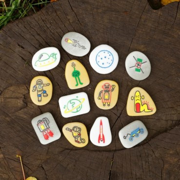 Laat de verhalen over de Ruimte tot leven komen met deze 13 prachtig gegraveerde verhaalstenen. Kinderen kunnen hun verhaal over de ruimte opbouwen door te kiezen uit de personages, omgevingen en objecten. Met deze vertelstenen over de ruimte ontstaan eindeloos veel mogelijkheden tot het vertellen van fantastische verhalen. De verhaalstenen zijn een handige manier om te gebruiken bij het thema ruimte in de klas, maar ook een goed idee om je kind uit te dagen zijn of haar fantasie te gebruiken of een verhaallijn te leren aanbrengen als onderdeel van een logopediebehandeling.